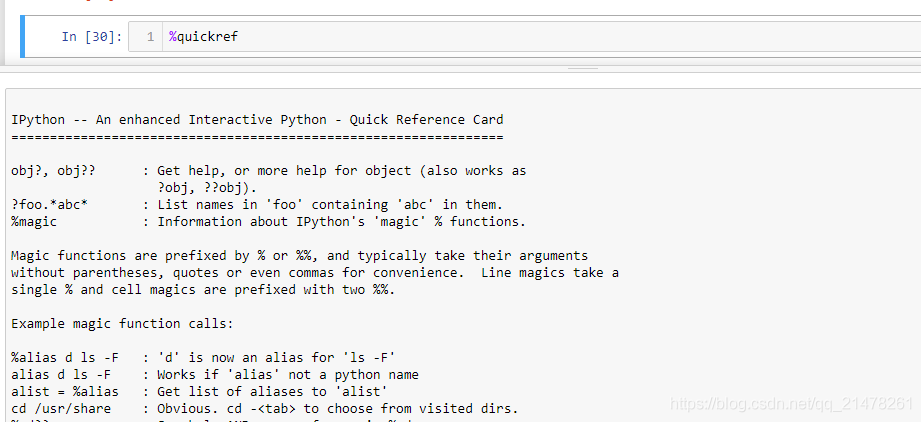 %quickref:輸出所有魔法指令的簡單版幫助文檔