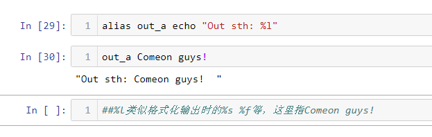 In [3]: %aliasTotal number of aliases: 16Out[3]:[("cat", "cat"), ("clear", "clear"), ("cp", "cp"), ("ldir", "ls -F -o --color %l | grep /$"), ("less", "less"), ("lf", "ls -F -o --color %l | grep ^-"), ("lk", "ls -F -o --color %l | grep ^l"), ("ll", "ls -F -o --color"), ("ls", "ls -F --color"), ("lx", "ls -F -o --color %l | grep ^-..x"), ("man", "man"), ("mkdir", "mkdir"), ("more", "more"), ("mv", "mv"), ("rm", "rm"), ("rmdir", "rmdir")]自己設(shè)置指令的別名,個人感覺沒啥意義,介紹一個。