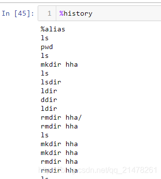 #Windows下有8個命令I(lǐng)n [1]: %alias#Total number of aliases: 8Out[1]:[("copy", "copy"), ("ddir", "dir /ad /on"), ("echo", "echo"), ("ldir", "dir /ad /on"),#列出文件夾 ("ls", "dir /on"), ("mkdir", "mkdir"),#創(chuàng)建文件夾 ("ren", "ren"), ("rmdir", "rmdir")]#刪除文件夾Linux下有16個默認(rèn)指令,感興趣可自己試驗。