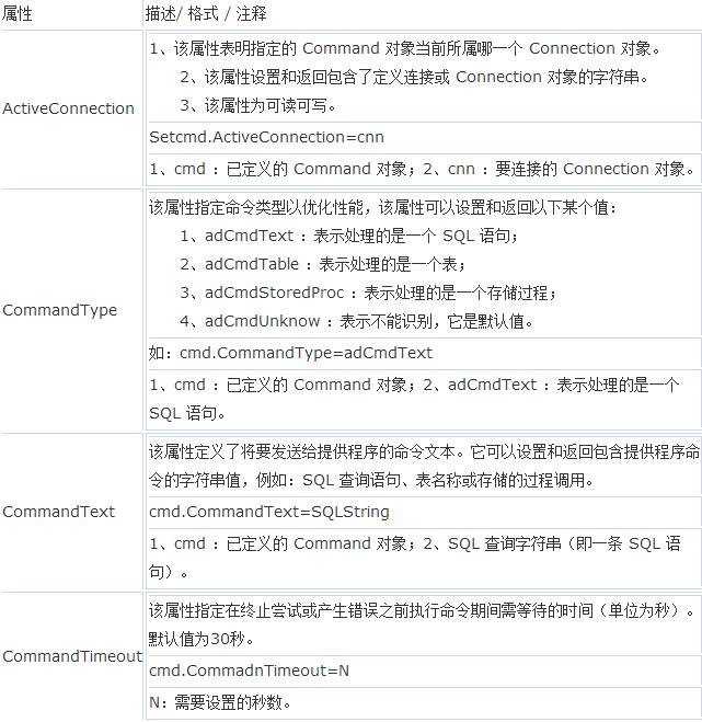 Coonamd 對象定義了將對數(shù)據(jù)源執(zhí)行的命令,可以用于查詢數(shù)據(jù)庫表并返回一個記錄集,也可以用于對數(shù)據(jù)庫表進行添加、更改和刪除操作。
