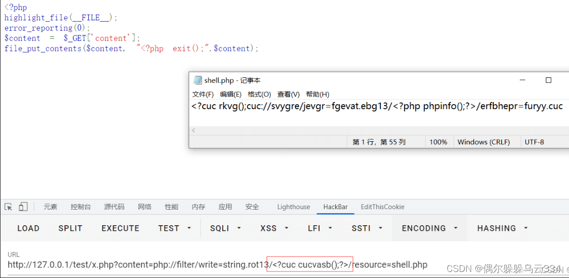 這種就是加了一個write直接寫入文件,然后紅色部分/可以換成別的管道符,只要和rot13隔開就行