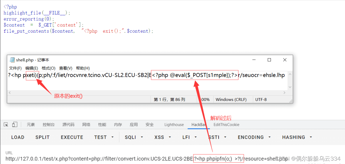 總結(jié):我們的思路其實都是相同的,通過某一個手段把exit繞過,然后執(zhí)行我們的命令,其實就是用一些編碼的特性,base64 rot13 usc-2 usc-4,都會把exit變成別的亂碼一般。