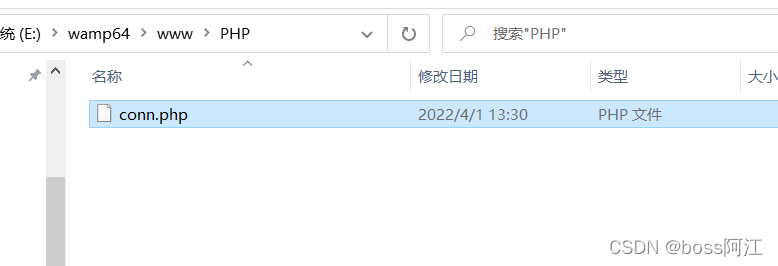 進入www文件夾后,新建一個PHP的文件夾(不新建也可以直接在www文件下寫php文件),然后在新建的PHP文件夾下建立一個PHP文件,這里命名為 conn.php。(conn.php的路徑是 www\PHP\conn.php 一定要在www文件夾里面)