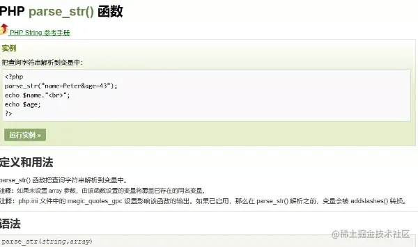 parse_str()這個(gè)函數(shù)會(huì)把查詢(xún)字符串解析到變量中。那么我們?nèi)绾卫盟奶匦阅兀覀兛聪旅娴睦樱?/p>