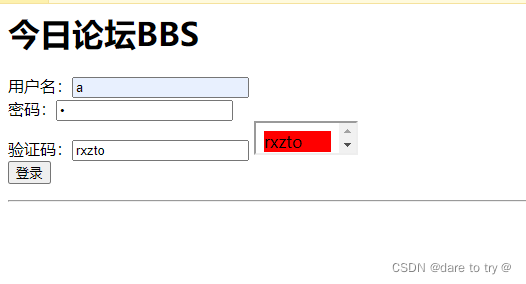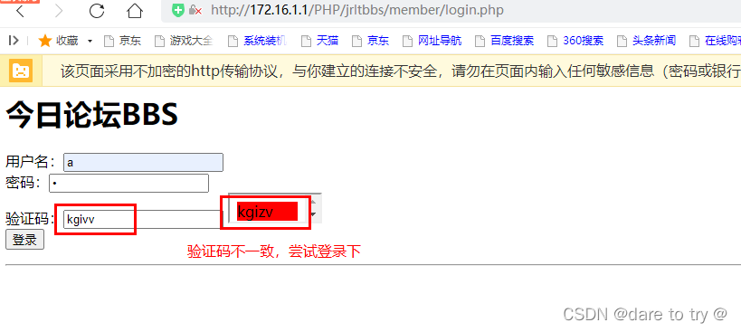 (7)點擊登錄,輸入賬號a,密碼1,并輸入驗證碼(驗證碼輸入不一致),嘗試下會出現什么結果,點擊登錄,出現以下提示。