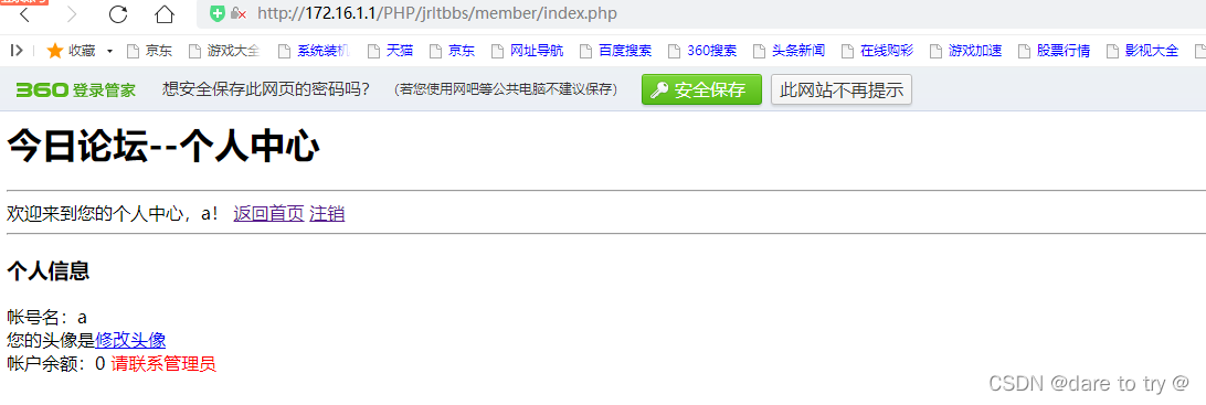(1)個人中心的首頁./member/index.php。具有如下功能: