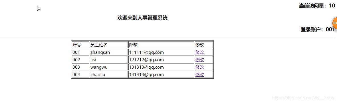 此系統使用jsp實現,其中包含了jsp九大內置對象和四大作用域的相關知識,采用map集合模擬數據庫的方式,實現用戶登錄、員工信息展示、員工信息修改功能。