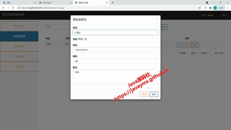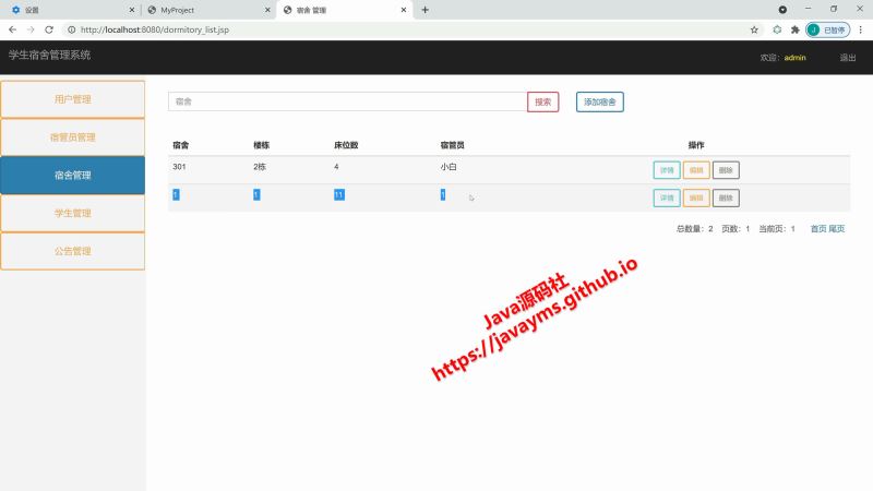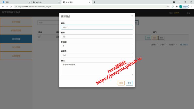 以上就是基于javaweb+jsp實(shí)現(xiàn)學(xué)生宿舍管理系統(tǒng)的詳細(xì)內(nèi)容,更多關(guān)于jsp學(xué)生宿舍管理系統(tǒng)的資料請(qǐng)關(guān)注其它相關(guān)文章!