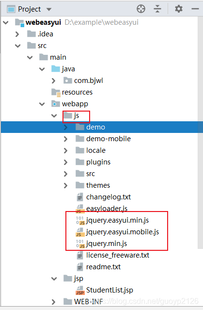 示例使用上一個(gè)項(xiàng)目:在webapp創(chuàng)建js目錄,將包解壓到此路徑下,如下圖