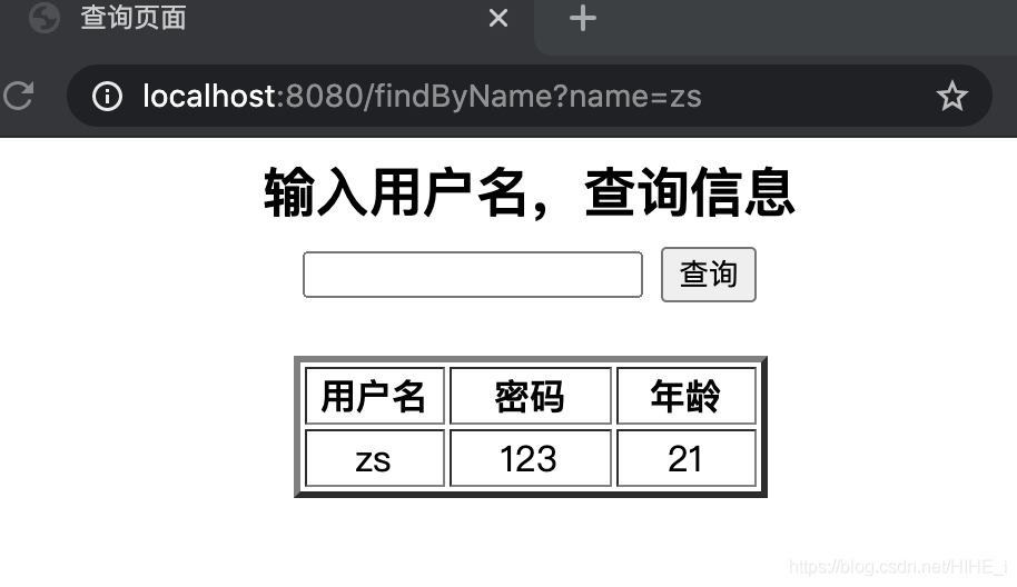 回到登錄頁面,登錄成功進入查詢頁面