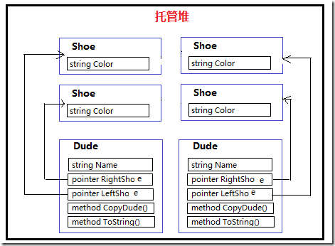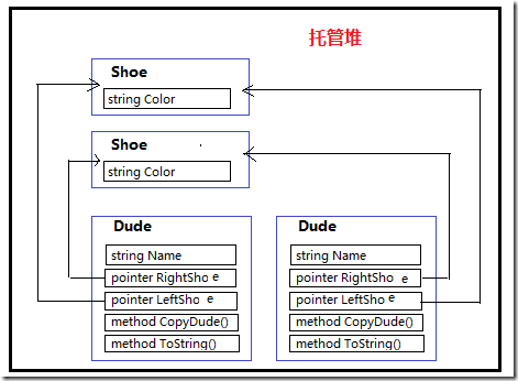 當(dāng)Dude類包含引用類型屬性Shoe的時候,在托管堆上的情況是這樣的:
