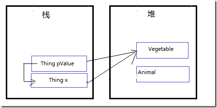 4、在Switcharoo(ref Thing pValue)內部,在托管堆上創建Vegetable對象實例。