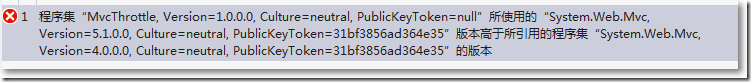 有辦法。重新打開MvcThrottle項目的類庫,在引用中刪除原來的System.Web.Mvc,重新引用本地ASP.NET MVC4版本,重新引用本地的System.Web.Mvc。
