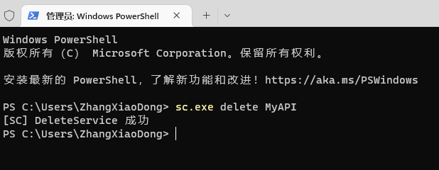 如:sc.exe delete MyAPI