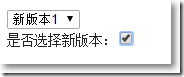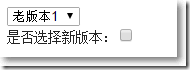 public class HomeController : Controller {public ActionResult Index(){ return View();}public ActionResult GetOld(){ var olds = new List<Old> {new Old(){Id = 1, Name = "老版本1"},new Old(){Id = 2, Name = "老版本2"},new Old(){Id = 3, Name = "老版本3"} }; IDictionary<string, string> result = new Dictionary<string, string> {{"-1","None"}}; foreach (var item in olds) {result.Add(item.Id.ToString(), item.Name); } return Json(result, JsonRequestBehavior.AllowGet);}public ActionResult GetNew(){ var news = new List<NewItem> {new NewItem(){Id = 1, Name = "新版本1"},new NewItem(){Id = 2, Name = "新版本2"} }; IDictionary<string, string> result = new Dictionary<string, string> { { "-1", "None" } }; foreach (var item in news) {result.Add(item.Id.ToString(), item.Name); } return Json(result, JsonRequestBehavior.AllowGet);} }在Home/Index.cshtml視圖中,根據checkbox是否勾選來呈現不同的內容。