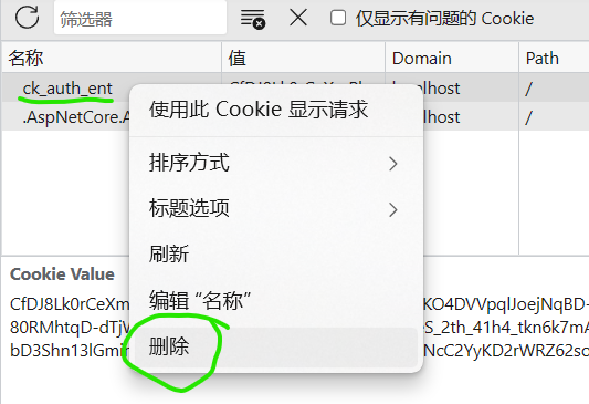 現(xiàn)在,把名為 ck_auth_ent 的Cookie刪除。