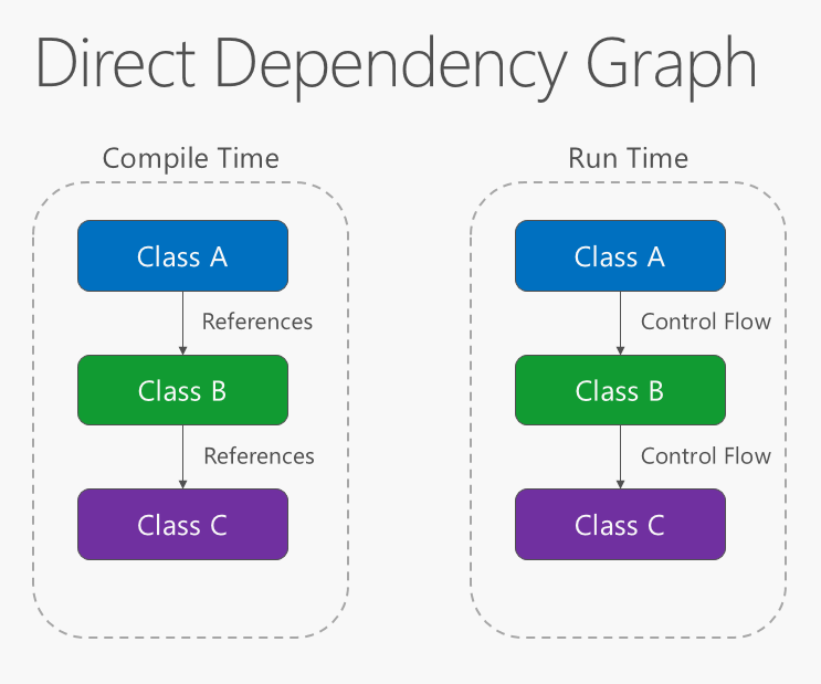 大部分應(yīng)用程序都是這樣編寫的:編譯時(shí)依賴關(guān)系順著運(yùn)行時(shí)執(zhí)行的方向流動(dòng),從而生成一個(gè)直接依賴項(xiàng)關(guān)系圖。 也就是說,如果類 A 調(diào)用類 B 的方法,類 B 調(diào)用 C 類的方法,則在編譯時(shí),類 A 將取決于類 B,而 B 類又取決于類 C