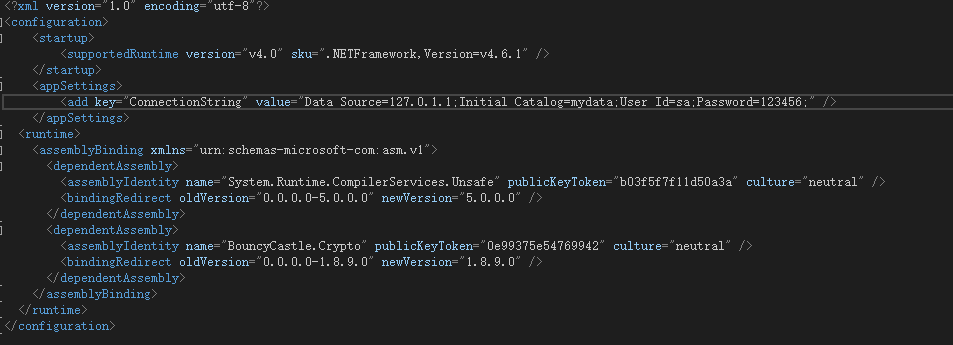 使用的話就引用包System.Configuration.ConfigurationManager 之后取里面的配置信息: