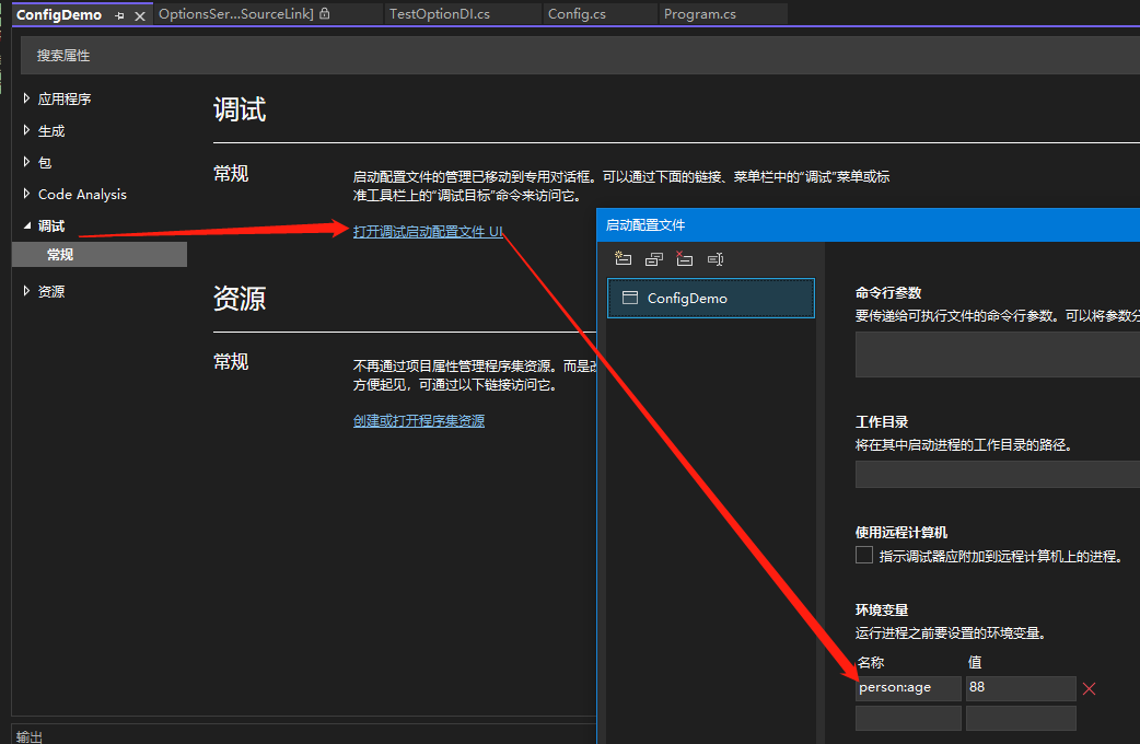 IConfiguration configuration = new ConfigurationBuilder().AddJsonFile("appsettings.json",optional:true,reloadOnChange:true).AddEnvironmentVariables().Build();在VS中配置臨時環境變量