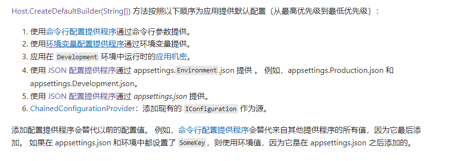 如最開始所說,不僅能配置json文件,由于各種提供程序,還可以配置其它的,但是根據配置的順序會進行覆蓋。我們只添加一個環境變量配置演示下: