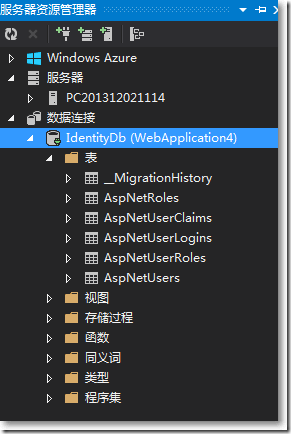 點擊左上角的"服務器資源管理器",右鍵"IdentityDb",點擊"刷新"。