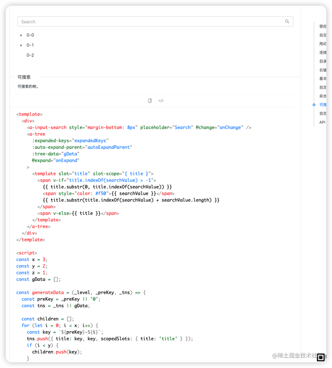 我使用的是 vue2 + antd, 那么 antd 的 tree 組件中沒有給我們封裝搜索,其官網提供的搜索也不是封裝好的,而且限制比較大,因為我的樹形進來要默認展開,官方的代碼是進行了響應式,就不能上來就全部展開了