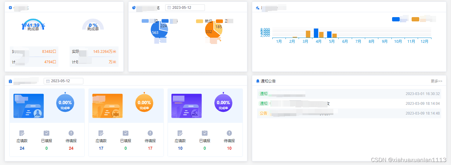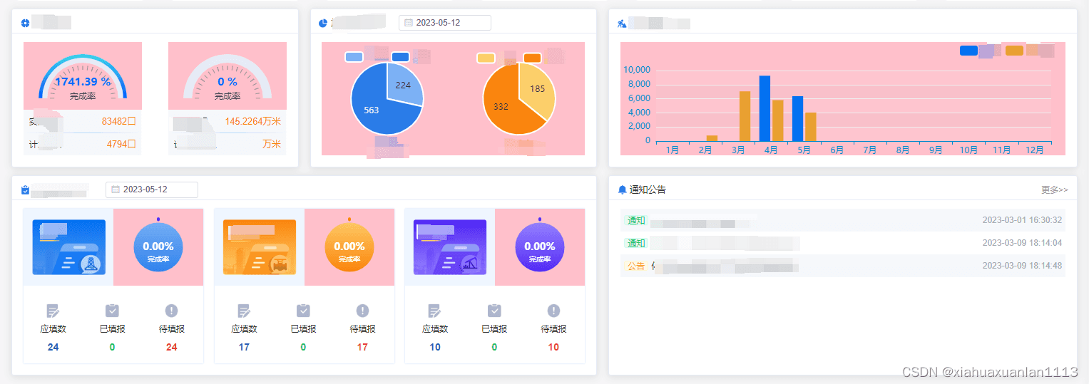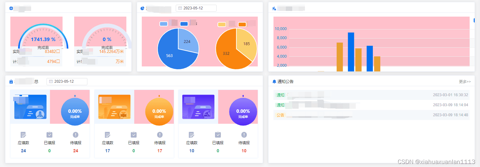 項目首頁中有多個echarts圖表,如下圖所示: