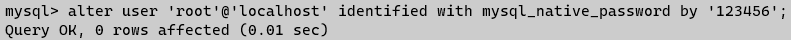先輸入alter user 'root'@'localhost' identified with mysql_native_password by '123456';