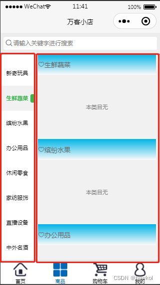 1.單擊左邊的商品類目,右側實現聯動跳轉到對應商品類目標題;