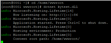 11、進入wwwroot目錄,執(zhí)行 dotnet kytest.dll,出現(xiàn)如下畫面說明運行正常。