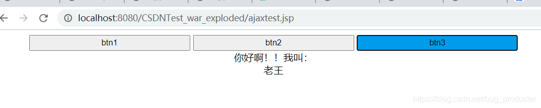 package test3_2.ajax;import javax.servlet.ServletException;import javax.servlet.annotation.WebServlet;import javax.servlet.http.HttpServlet;import javax.servlet.http.HttpServletRequest;import javax.servlet.http.HttpServletResponse;import java.io.IOException;@WebServlet("/ajaxServlet")public class AjaxServlet extends HttpServlet { protected void doPost(HttpServletRequest request, HttpServletResponse response) throws ServletException, IOException { request.setCharacterEncoding("UTF-8"); response.setContentType("text/html; charset=UTF-8"); response.setCharacterEncoding("UTF-8"); //1、獲取ajax傳遞過(guò)來(lái)的參數(shù)信息 String flag = request.getParameter("flag"); System.out.println(flag); //2、需要返回的數(shù)據(jù)信息 String data = " "; if("one".equals(flag)){//流行歌曲 data = "張三"; }else if("two".equals(flag)){//經(jīng)典歌曲 data = "李四"; }else if("three".equals(flag)){//搖滾歌曲 data = "老王"; } //3、將數(shù)據(jù)信息回寫(xiě)給ajax response.getWriter().write(data); } protected void doGet(HttpServletRequest request, HttpServletResponse response) throws ServletException, IOException { doPost(request,response); }}截圖: