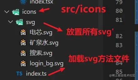 {test: /.svg$/,loader: "svg-sprite-loader",include: path.resolve(__dirname, "../src/icons"), options: { symbolId: "icon-[name]" } }, {test: /.(eot|woff2?|ttf|svg)$/,exclude: path.resolve(__dirname, "../src/icons"), // 不處理 svg類型文件use: [ { loader: "url-loader", options: { name: "[name]-[hash:5].min.[ext]", limit: 10000, outputPath: "font", publicPath: "font" } }] },第三步:創建icons/svg文件夾,并且加載所有svg文件