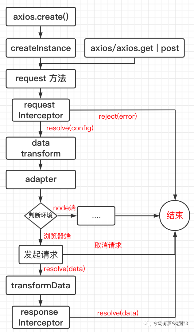 在axios源碼中將發(fā)送請求分為了請求攔截器、發(fā)送請求、響應攔截器、相應回調,通過Promise的鏈式調用將這些部分結合起來了,這樣就得到了發(fā)送請求拿到數據的全部過程。