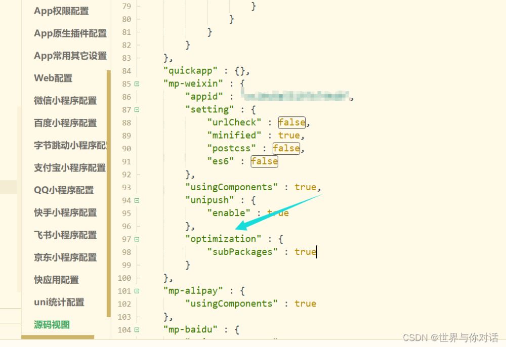 optimization下的subPackages節(jié)點(diǎn)時(shí)用來控制微信分包的,需要將此節(jié)點(diǎn)設(shè)為true