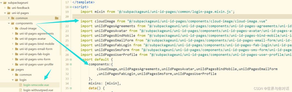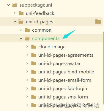 在uni-id-pages下有如下的組件,這些組件在經(jīng)過分包之后,只能在子包內(nèi)才能訪問,而通過uniapp的組件引入是通過easycom組件規(guī)范來引入的,詳細(xì)見如下鏈接: