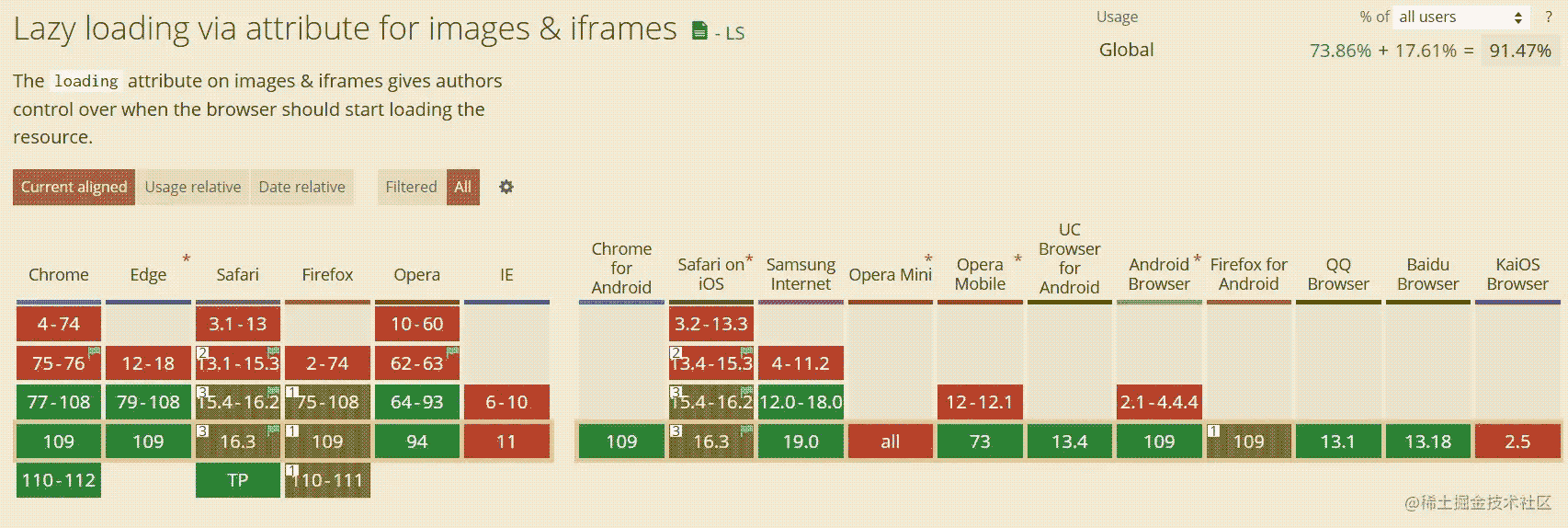 HTMLImageElement 的 loading 屬性為一個(gè)字符串,它的值會(huì)提示 用戶代理 告訴瀏覽器不在可視視口內(nèi)的圖片該如何加載。這樣一來,通過推遲圖片加載僅讓其在需要的時(shí)候加載而非頁面初始載入時(shí)立刻加載,優(yōu)化了頁面的載入。