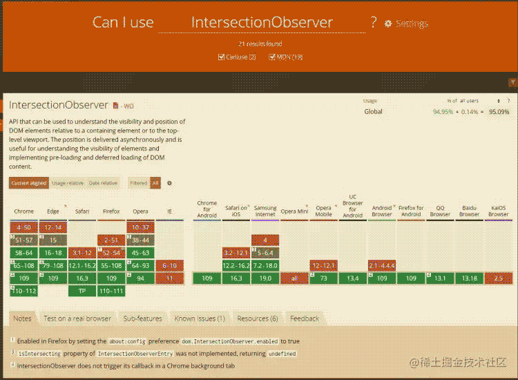 低版本瀏覽器 IntersectionObserver 存在問題,不支持 IE。