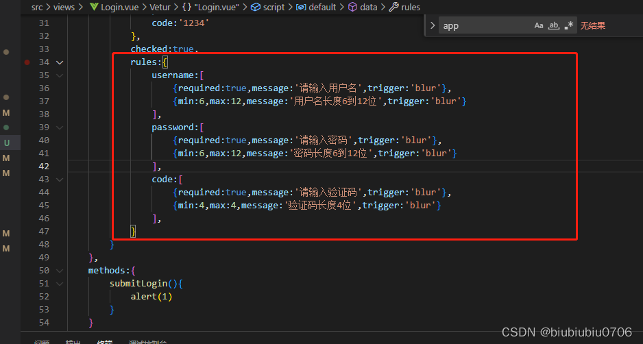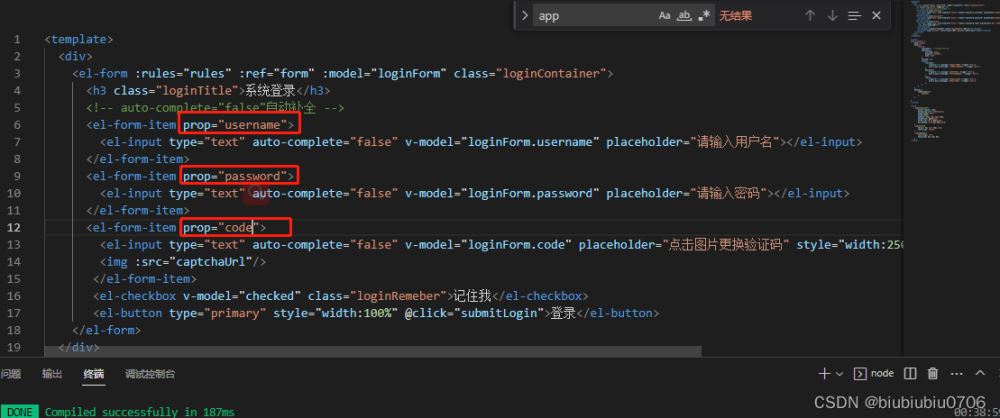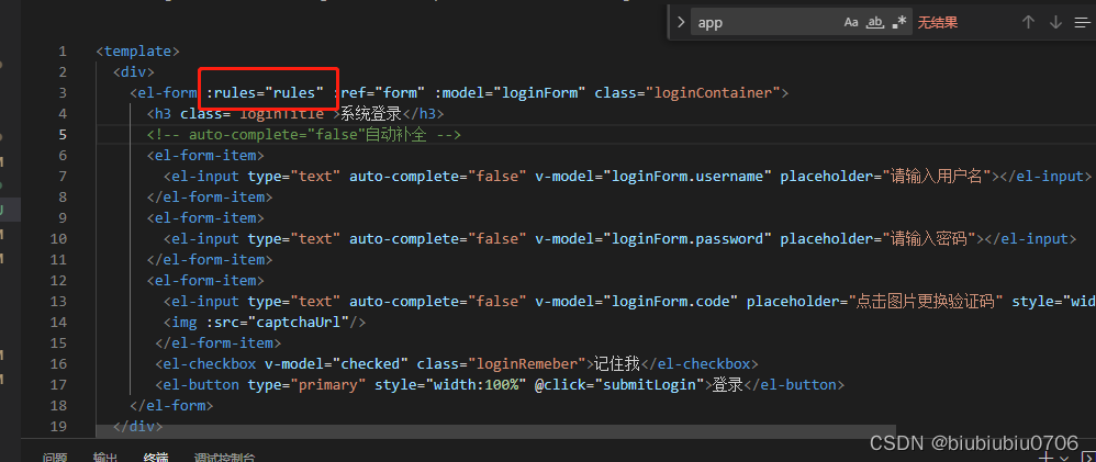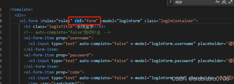 校驗(yàn)的username,password,code需要和上面的對(duì)應(yīng)上 需要加prop屬性