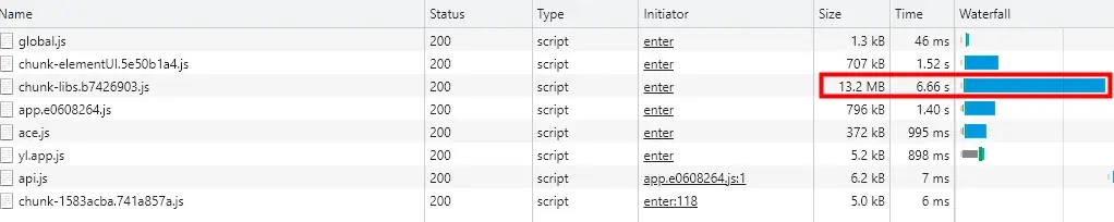 基本原理瀏覽器請求資源文件時會自動帶一個Accept-Encoding的請求頭告訴服務器支持的壓縮編碼類型服務器配置開啟gzip選項:接收客戶端資源文件請求,查看請求頭Content-encoding支持的壓縮編碼格式,如果是包含gzip那么在每次響應資源請求之前進行gzip編碼壓縮后再響應返回資源文件(在響應頭會帶上Content-encoding: gzip)瀏覽器接收到響應后查看請求頭是否帶有Content-encoding:gzip,如果有進行對返回的資源文件進行解壓縮然后再進行解析渲染具體使用1.安裝插件npm install --save-dev compression-webpack-plugin2.配置插件const CompressionPlugin = require('compression-webpack-plugin');const productionGzipExtensions = /\.(js|css|json|txt|html|ico|svg)(\?.*)?$/i;module.exports = { publicPath: './', productionSourceMap: false, configureWebpack: {...}, chainWebpack: config => {config.resolve.alias.set('@', resolve('src'));if (process.env.NODE_ENV === 'production') { config.plugin('compressionPlugin') .use(new CompressionPlugin({filename: '[path].gz[query]',algorithm: 'gzip',test: productionGzipExtensions,threshold: 10240,minRatio: 0.8,deleteOriginalAssets: true }));} },};或者