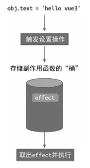 當設置obj.text時,再把副作用函數effect從“桶”里取出并執行。