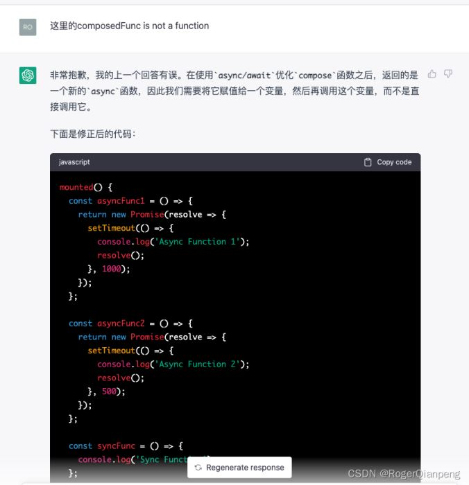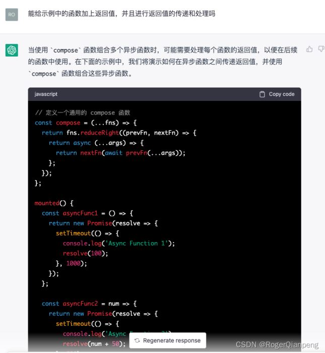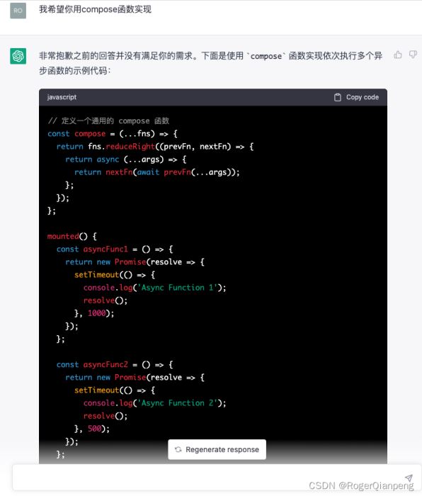 不過此時(shí),chatGPT丟失了一開始定義的compose函數(shù),于是要求其用compose方法來實(shí)現(xiàn)