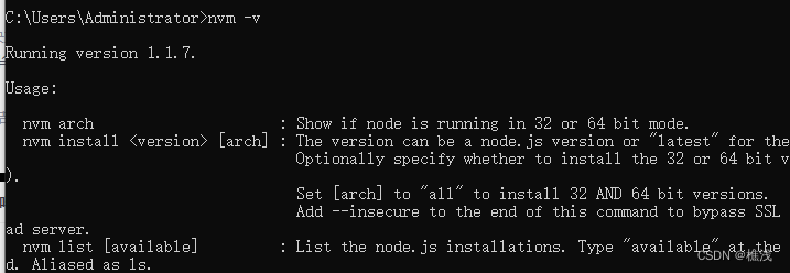 這里我下載了 1.1.9 版本nvm,安裝node低版本是沒問題的,但use nvm的時候報此問題,查了各種原因,最后使用 1.1.7 以下版本成功解決