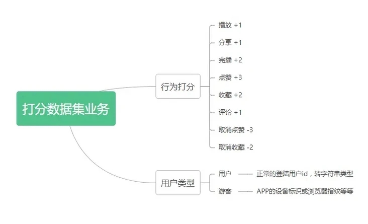 CREATE TABLE `short_video_rating` ( `id` int(11) NOT NULL AUTO_INCREMENT, `user_id` varchar(120) DEFAULT '', `item_id` int(11) DEFAULT '0', `rating` int(11) unsigned DEFAULT '0' COMMENT '評(píng)分', `scoring_set` json DEFAULT NULL COMMENT '行為集合', `create_time` int(11) DEFAULT '0', `action_day_time` int(11) DEFAULT '0' COMMENT '更新當(dāng)天時(shí)間', `update_time` int(11) DEFAULT '0' COMMENT '更新時(shí)間', `delete_time` int(11) DEFAULT '0' COMMENT '刪除時(shí)間', PRIMARY KEY (`id`)) ENGINE=InnoDB AUTO_INCREMENT=107 DEFAULT CHARSET=utf8mb4 COMMENT='用戶對(duì)視頻評(píng)分表';業(yè)務(wù)介紹
