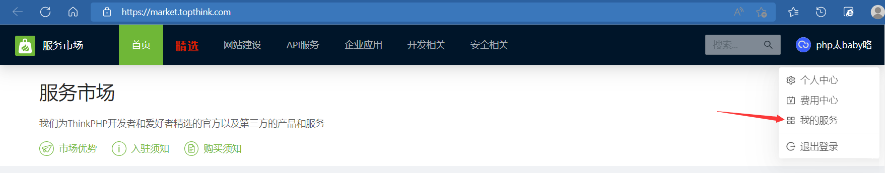 一、注冊ThinkPHP服務(wù)市場賬號服務(wù)市場首頁鏈接