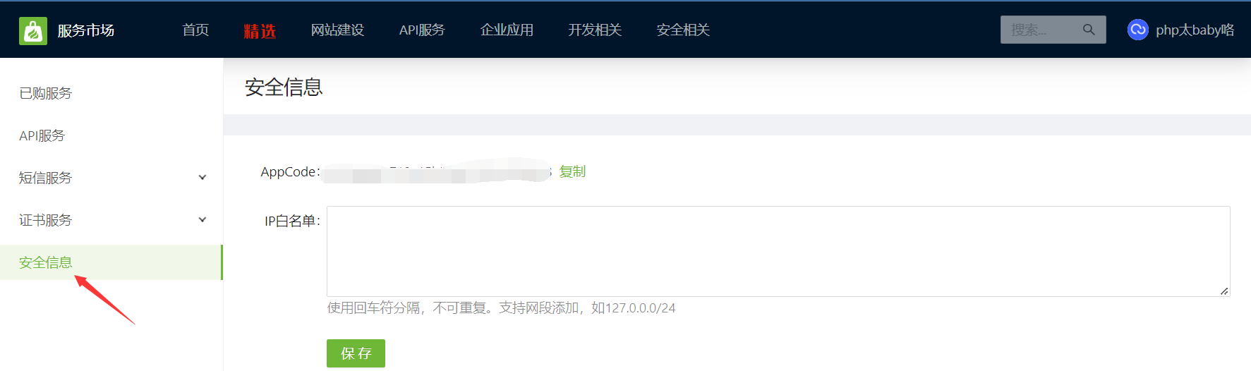 二、拿到自己的AppCode(因為調(diào)用接口需要啦)(1)點擊我的服務(wù)