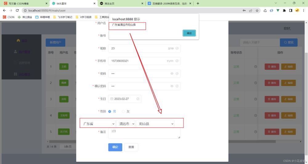然后在data中聲明省市區這三個變量,用于接收下拉框省市區的值