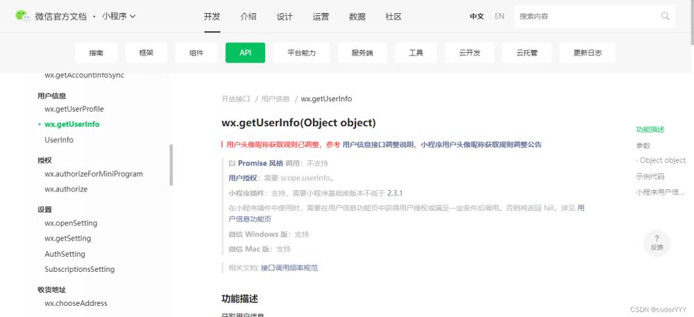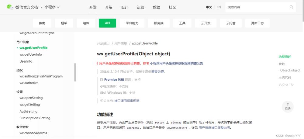 對應的官方文檔:https://developers.weixin.qq.com/miniprogram/dev/api/open-api/user-info/wx.getUserProfile.html