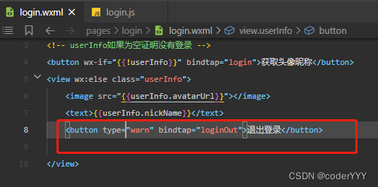 由于上面用的判斷是否登錄,是用userInfo是否為空判斷的,所以我們退出登錄只要把userInfo清空就行了,就是這么簡單粗暴!