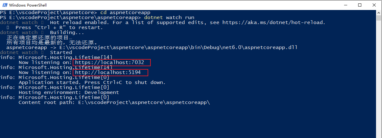 dotnet watch run執(zhí)行運行命令后,我們可以看到有兩種訪問方式,一種https和http