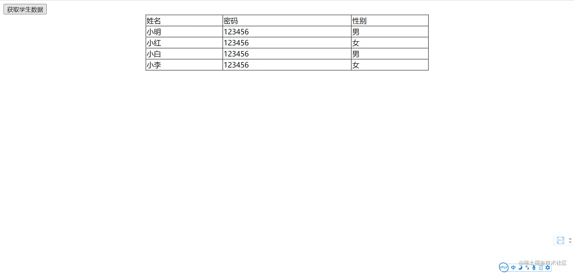 點擊獲取數據,則會打印后臺傳來的數據